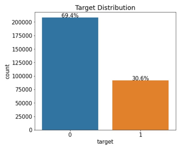 각 막대 위에 비율이 표시돼서 타깃값 0과 1이 약 7대 3 비율인 것을 바로 파악할 수 있게 되었다!
