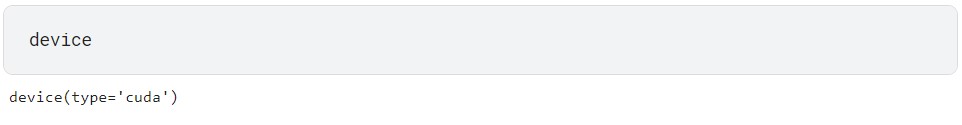아래 코드로 연산에 이용할 장비를 할당합니다. 병렬 처리 플랫폼인 CUDA에서 GPU를 사용할 수 있다면 장비를 'cuda'로, 아니면 'cpu'로 설정하도록 합니다.