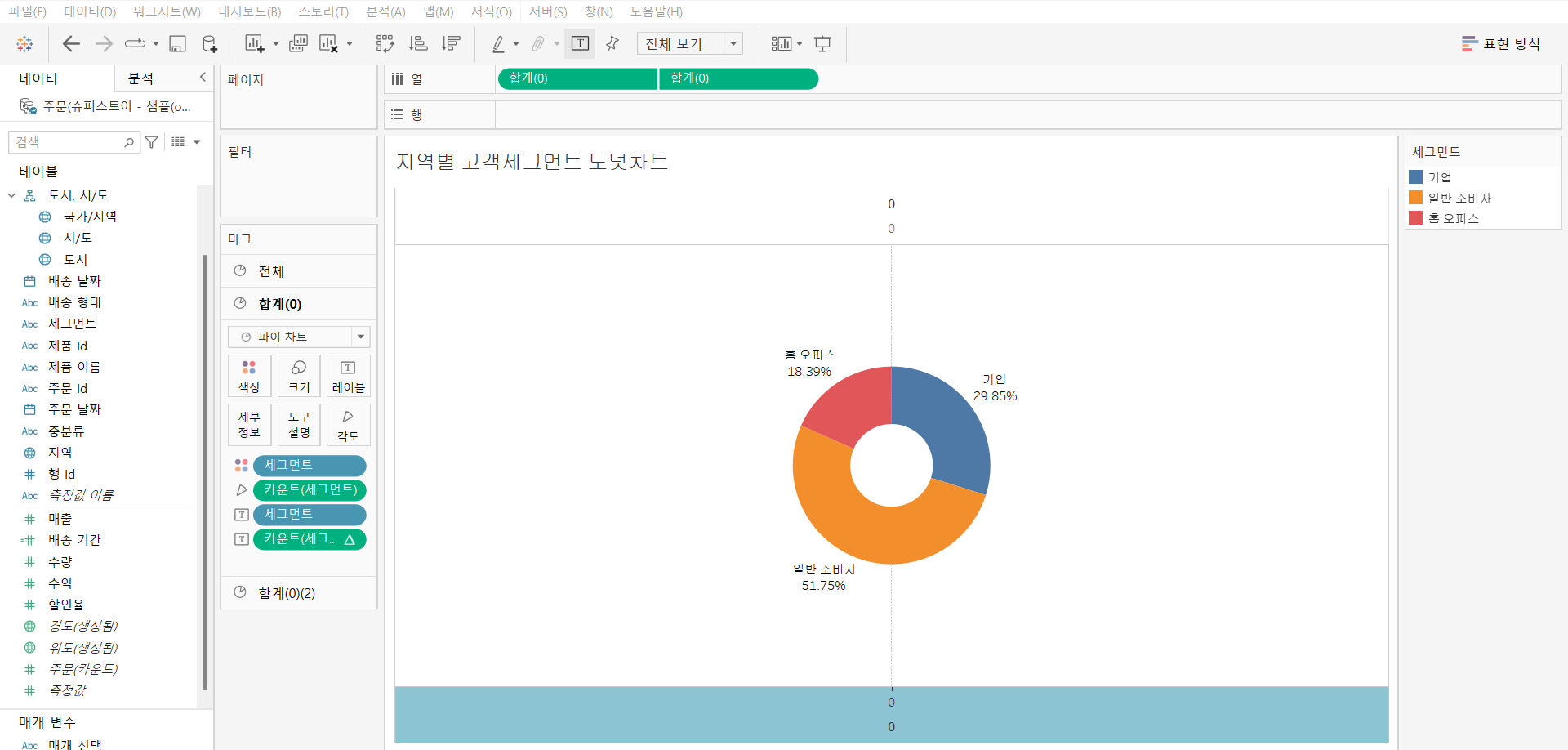 [태블로] 고객 세그먼트 비율 도넛 차트 만들기Tableau 2023. 4. 5. 14:00