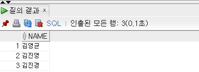 이름의 길이와 상관없이 성이 '김' 씨인 학생을 모두 검색하였다.